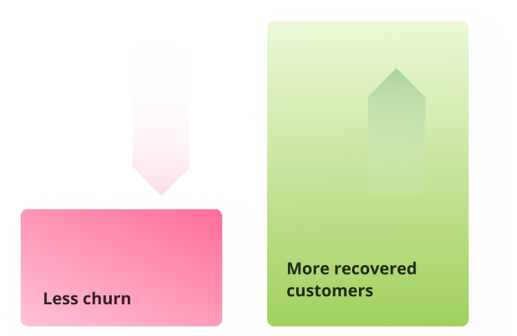 Failed payments are recovered to reduce churn using strategies that maintain a positive customer experience. A seamless payment process improves subscriber retention and helps subscription companies achieve full customer LTV.